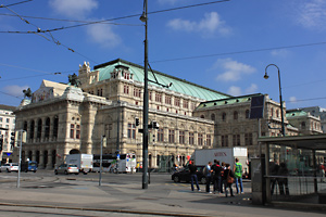 おとといは憧れのムジークフェラインでウィーン・フィルを聴くという贅沢を楽しんだが、今度は夢のウィーン国立歌劇場でオペラ鑑賞だ。本来は今日が初めてではなく、3日前にウィーン入りをした際に1回目のオペラ「サロメ」を観るはずだったのだ。しかし、フランクフルトからの乗り継ぎ便がトラブルで2時間遅れてしまったために間に合わなかった(涙)。オペラ座に着いたのは終演間近だったので、劇場外に設置されていた大型スクリーンで泣く泣く10分ほど鑑賞した。モニター越しとはいえ、いい演奏だったなぁ・・・。海外旅行ではタイトなスケジュール組んだらダメですね。教訓です。。。